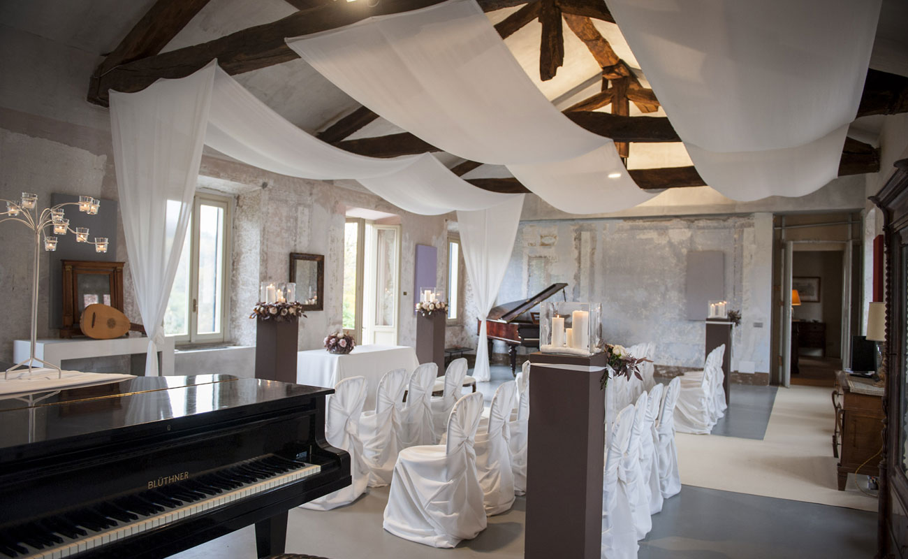 By virtue of an agreement signed with the Municipality of Bodio Lomnago, obtained with the consent of the Prefecture of Varese, at Villa Bossi it is possible to celebrate Official Civil Ceremonies. Among the reasons for this significant concession, the Municipality recognizes the important cultural initiatives and the symbolic importance - in the complex of Villa Bossi - of the Tower of Bodio, important monument also present in the town emblem.