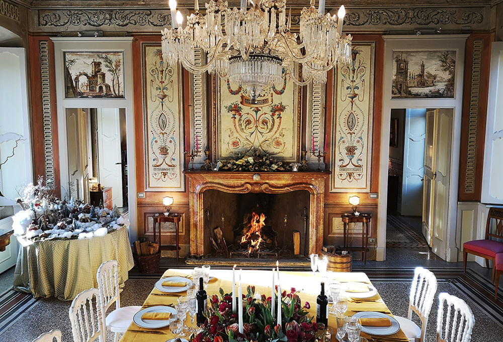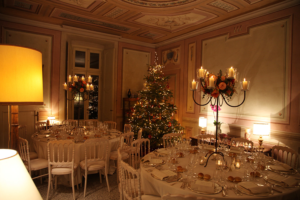 Nel mese di Dicembre la villa viene allestita con l’albero di Natale, ghirlande e addobbi. Se lo si desidera, il camino della sala centrale viene acceso, così che l’atmosfera risulti ancora più intima e confortevole.