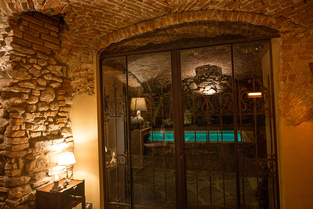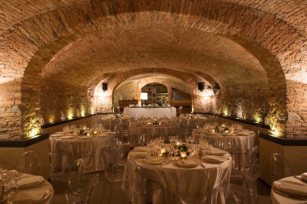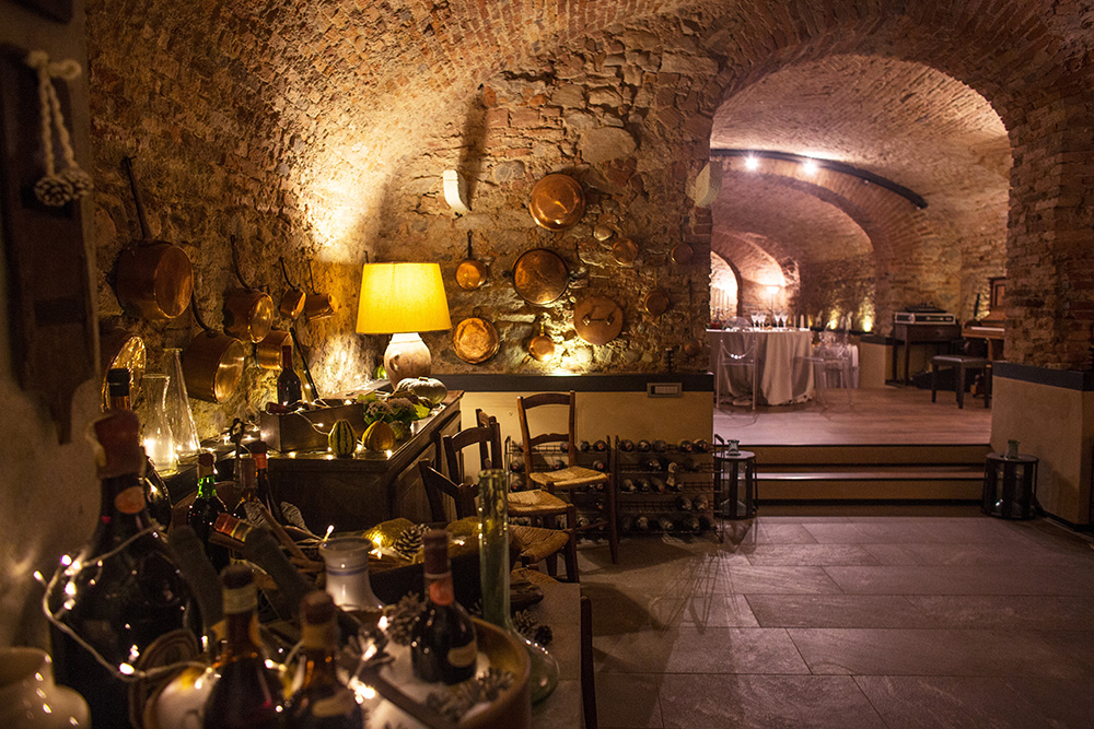 L’ampia e suggestiva Cantina cinquecentesca, direttamente affacciata sull’area della piscina, è uno spazio polifunzionale adatto ad aperitivi, cene e anche per ballare.