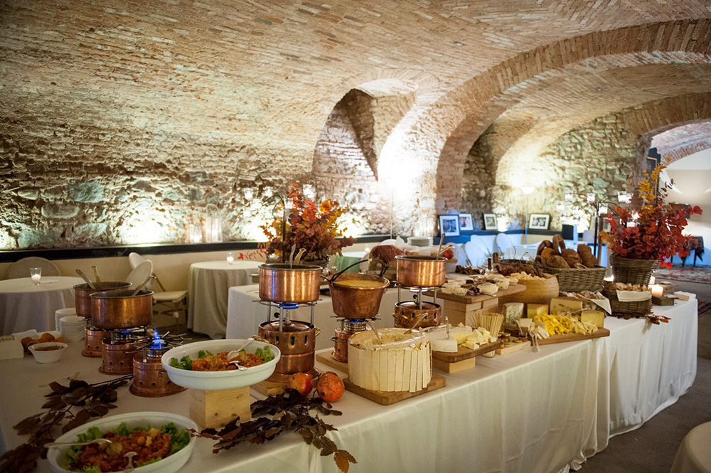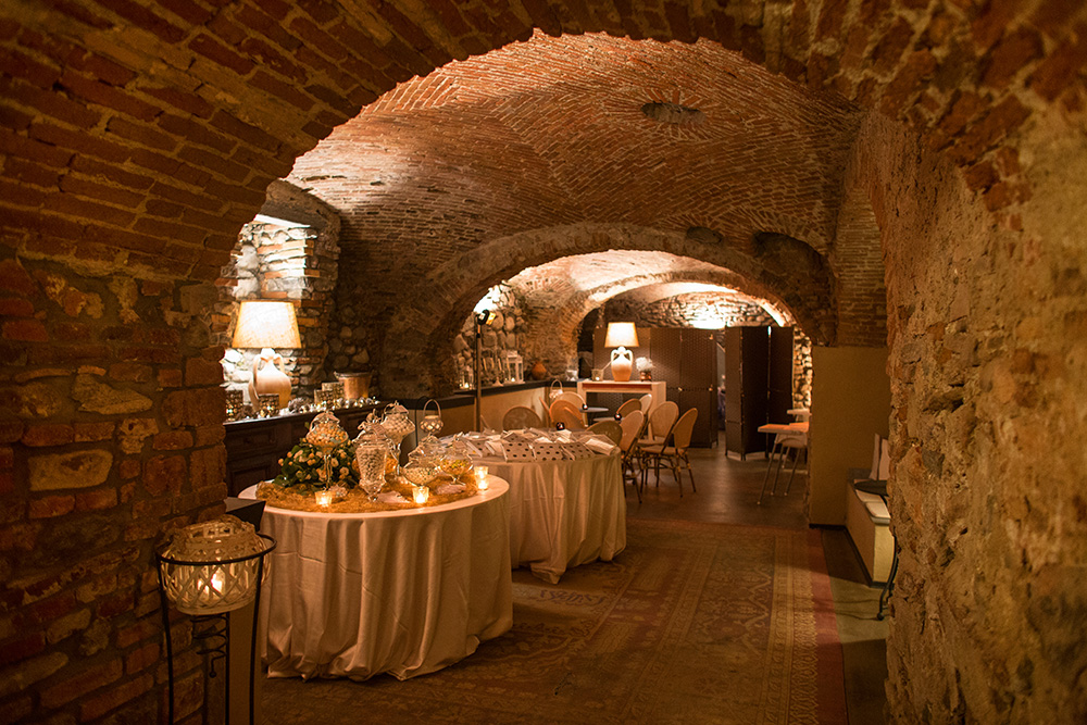 La varietà degli spazi interni ben si presta ad accogliere i vostri ospiti, che potranno passeggiare liberamente tra le calde sale illuminate da centinaia di candele. Gli affreschi dai colori tenui, i mobili antichi, l’illuminazione curata, la Collezione di strumenti musicali creano un’atmosfera avvolgente, elegante e accogliente.